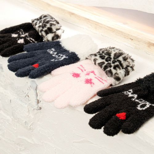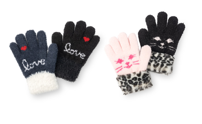 ふんわりかわいいデザインが魅力のキッズ手袋。 ふわふわモコモコな生地が心地よくて気持ちいい! 伸びの良い伸縮性のある素材で付け心地も抜群。 フィット感が違います。カフスはボア折り返し構造なので、手首にピッタリフィットして暖かさを逃しません。 優れたストレッチ性で動き回ってもぴったりフィット! お外で遊びまわっても脱げないので安心です。ほとんどの企業が金属針起毛に移行する中当店では高い品質の商品をお届けしたいという強い思いから、 チーゼルというとげのある天然植物を使用したチーゼル起毛を採用。 非常に手間がかかるため、今では世界でも数社しか稼働されておりません。しかし、金属針の起毛では不可能な柔らかいタッチの起毛を隅々まで施せるため 何とも言えない抜群の肌触りを実感いただけます。 寒い屋外でも暖かさが持続します。ひんやりとした空気の侵入や熱が逃げるのを防ぎます。 カプサイシンとカモミール成分配合のSelfHeater加工なので指先までしっかりあったか。 裏起毛は一双手作業で丁寧に仕上げております。
