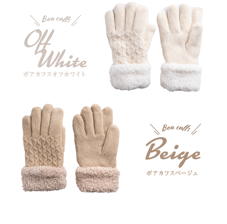 ざっくりしたケーブル編みのニットの中は総ボアでモコモコで文句なしに暖かい!かなりの厚みがあり、指先までボアが入っています。きれいめスタンダードカラーでどんなコーデにも合いやすいです♪スッキリと見せたいリブ編みカフスとボリューミーでかわいいボアカフスの2パターンからお選びいただけます。通勤や通学、お出掛け、デイリー使いに♪