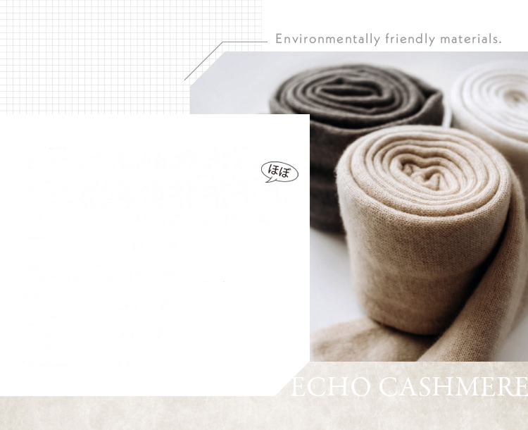 リサイクルカシミヤと バージンカシミヤ繊維の混合糸。 CO2の節約ができ、 環境にやさしい素材を 使用しています。