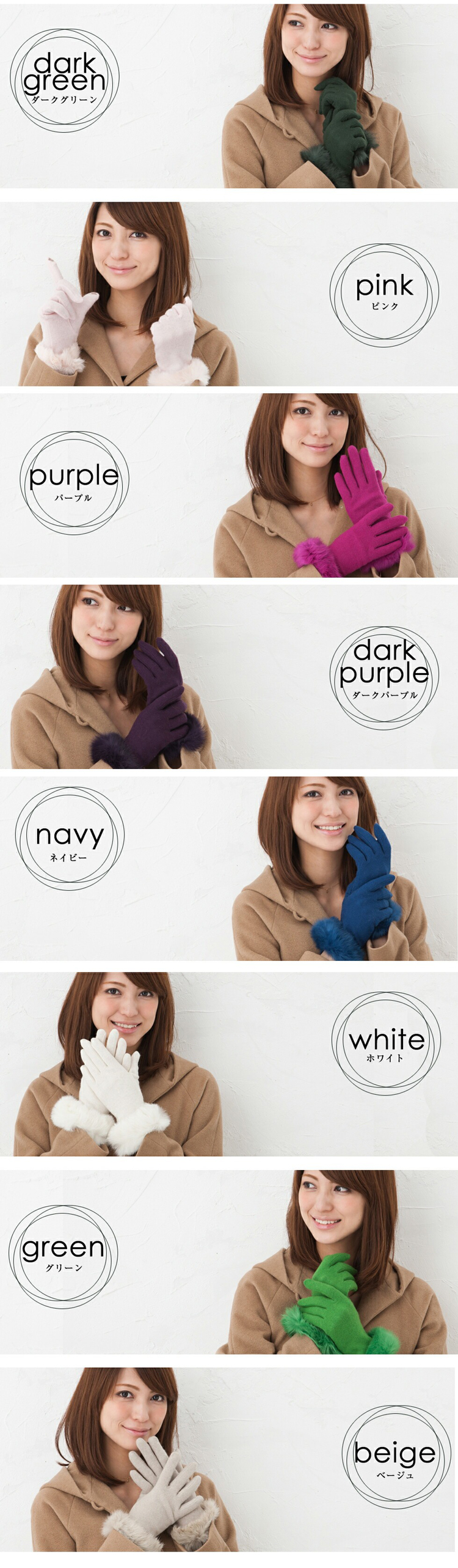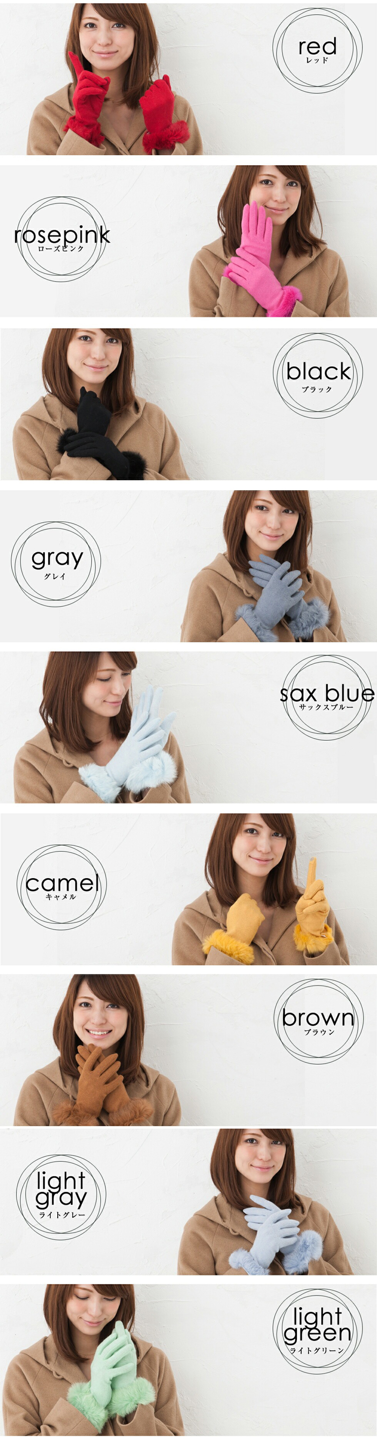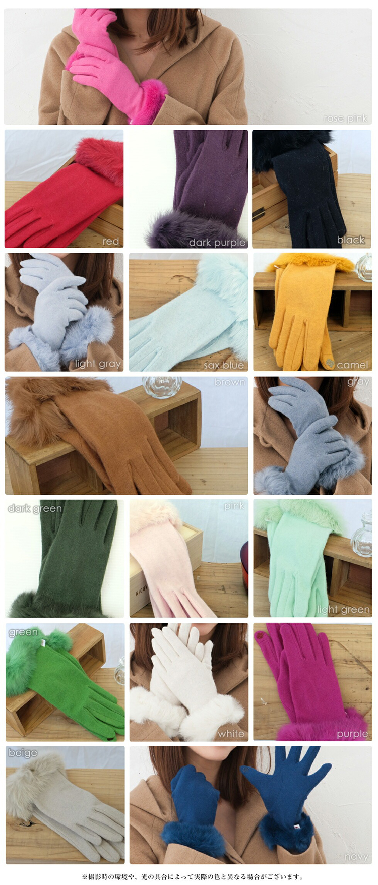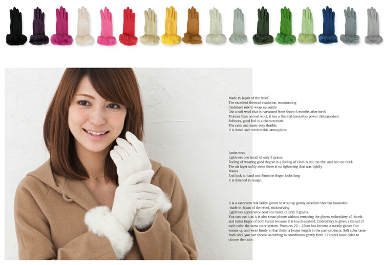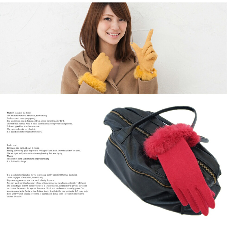 リアルラビットファーがエレガントでリッチな手元を演出。安心の日本製だからタッチも非常に滑らかです。チクチク感もなくうっとりするような付け心地の良さが魅力。タッチパネル対応で寒い屋外でも手袋をつけたままスマホをご利用いただけます。こだわりの当店オリジナルのサイズ感全長25cmは、長めに仕上げている事でしっかりと手首まであたため、デザインも長めなことでエレガントさがより演出できています。カラーバリエーションも豊富な17色。ベーシックなカラーから優しく柔らかいお色まで、コーディネートに合わせてお選びいただけますよ!