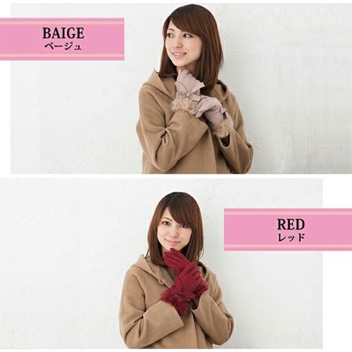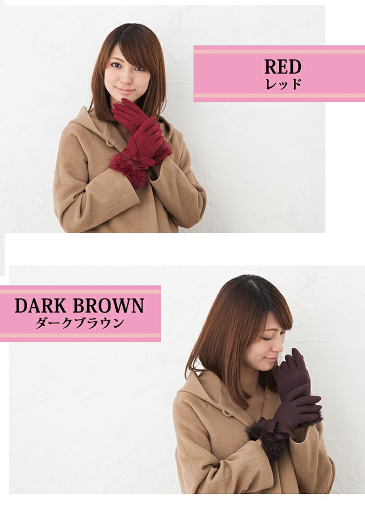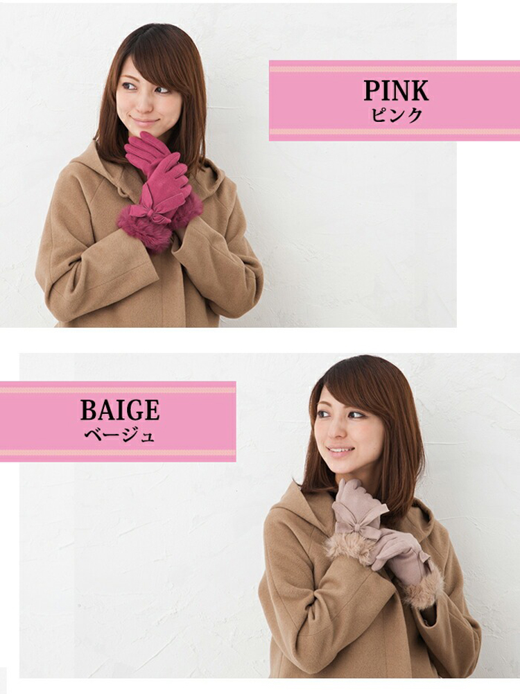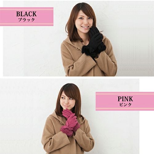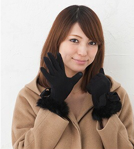 かわいいファー付き手袋。甲部分にはビックサイズのリボン付き。