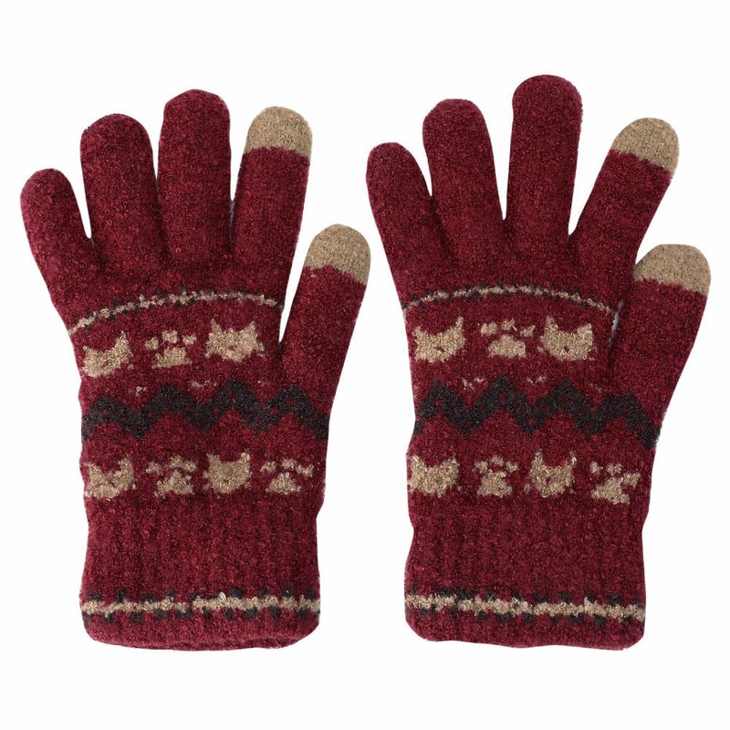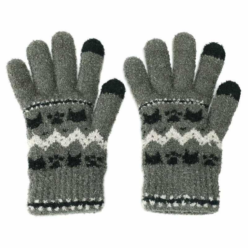 タッチが非常になめらかなので、他にはない心地よさ、優れたフィット感とストレッチ性が魅力です。 シュークリーム糸で編んだ手袋はしっかりと暖かで伸縮性があり使い勝手は抜群。 手のひら全体を優しく包み込み、寒い冬でもあったかです。ほとんどの企業が金属針起毛に移行する中、当店では高い品質の商品をお届けしたいという強い思いから、 チーゼルという棘のある天然植物を使用したチーゼル起毛を採用。 非常に手間がかかるため、今では世界でも数社しか稼働されておりません。 しかし、金属針の起毛では不可能な柔らかいタッチの起毛を隅々まで施せるため 何とも言えない抜群の肌触りを実感いただけます。寒い屋外でも暖かさが持続します。 染色段階で血流を良くするハーブのカモミールエキスとカプサイシン配合のSelfHeater加工を施しているので、温感効果も期待できます。もちろん、スマホ対応OKです!さりげなくネコの柄です。