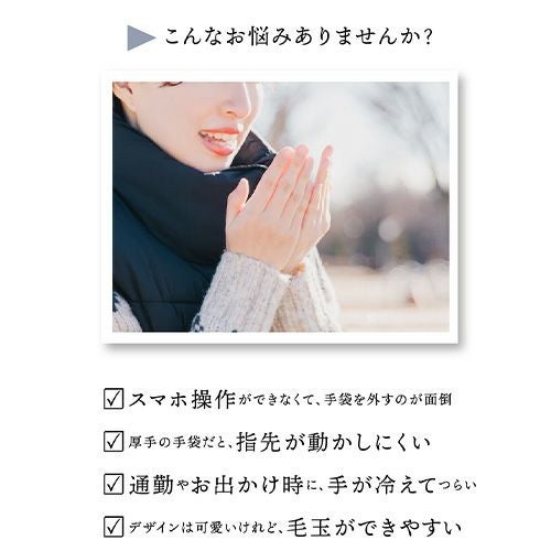 指無タイプのアームカバーで作業も楽にこなせます、プレミアシュー使用のカシミヤのような優しい肌触りの商品です。見た目のもこもこ感が少なく着用感もスリムに見えて手のラインがきれいに見えます。柄は人気のネコ柄など2柄。セルフヒーター加工でぽかぽか、室内でも外でもおすすめの商品です。
