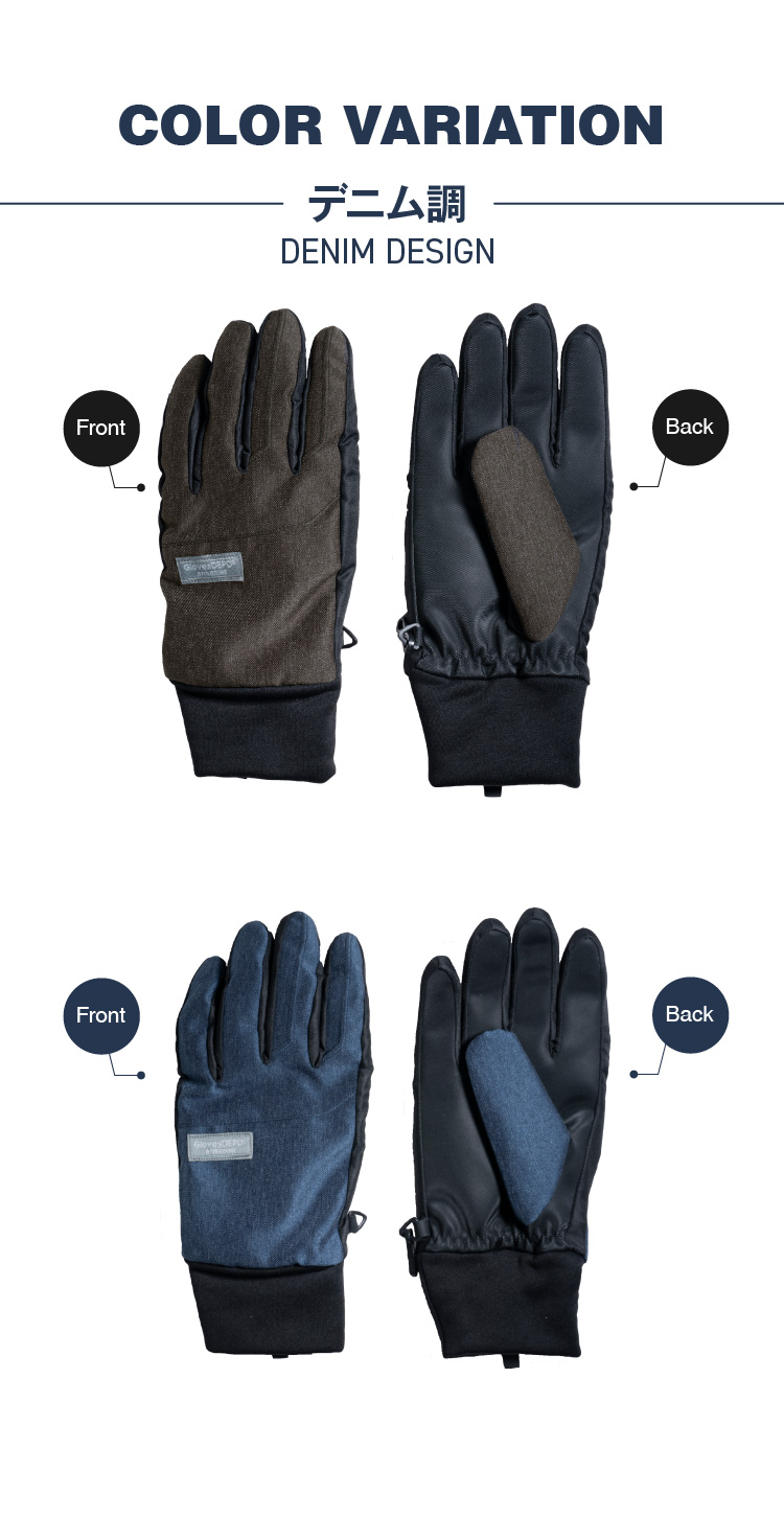 掌全体が滑り止になっておりグリップ力もよく物がつかみ見やすい。耐久力もあり防風性にも優れているのに軽くて柔らかく、使いやすい!インナーはフリース素材で肌触りもよくあったかい。シャープな見た目で着用しててもスマートに見えるデザイン。2デザイン×2カラーからお選びいただけます。同じデザインでレディースサイズとキッズサイズもご用意してるのでご家族でお揃いはいかがでしょうか?