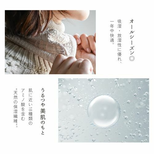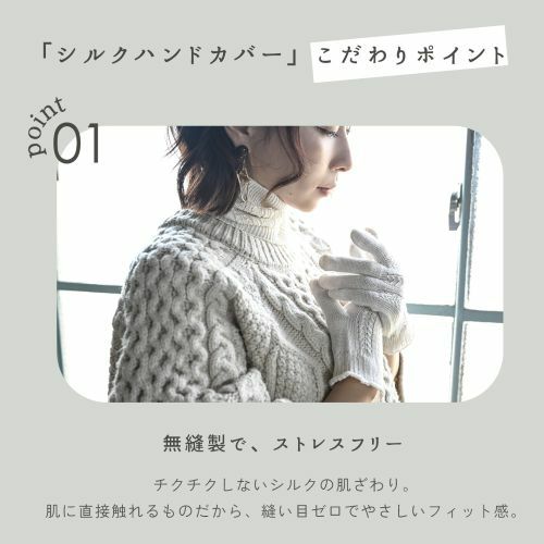 吸湿性・放湿性・保湿性に優れた「天然繊維シルク」。お肌に最も近い天然繊維と言われるほど人体への生体適合性が高く、刺激がないため、アレルギー体質の方にも安心してご使用いただける「シルク100%のネックカバー」です。しかも、日本製の糸を使い、日本で編み立てをしている素材から生産まで、安心の日本製レディース手袋、毛玉にもなりにくいシルク糸を使用。なんと言っても、一年を通して使えるのがシルクのスゴイところ♪夏は汗を吸収し、余分な水分を放出してくれるので、肌触りサラサラの快適な付け心地♪乾燥が気になり出す寒い冬には、就寝時に着用してもしっとり暖か、締め付け感も少なく寝苦しさも軽減し快適な肌触りをご実感いただけます。冬の夜にもシルクが潤いを逃しません。お休みネックカバーとしても乾燥にお悩みのレディースにおススメ。