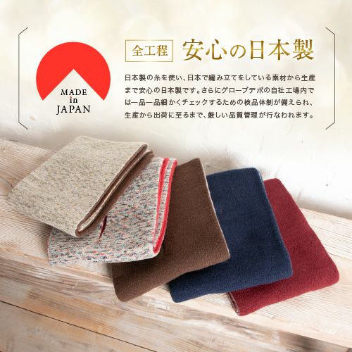 日本製の糸を使い、日本で編み立てをしている素材から生産まで安心の日本製です。さらにグローブデポの自社工場内では一品一品細かくチェックするための検品体制が備えられ、生産から出荷に至るまで、厳しい品質管理が行なわれます。