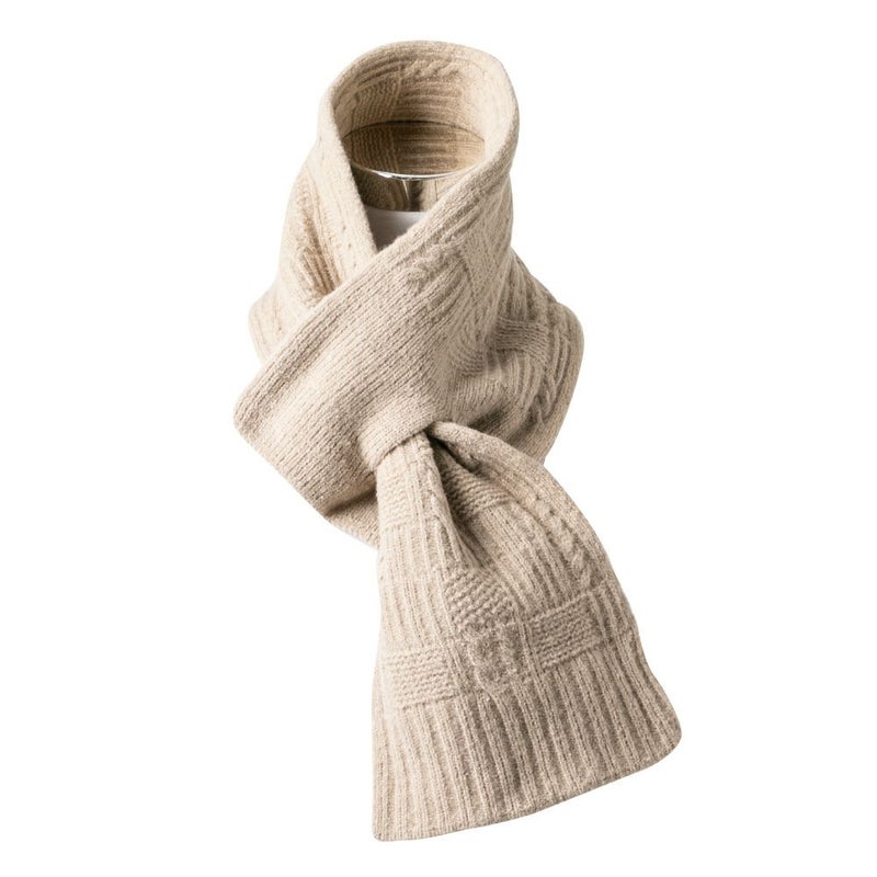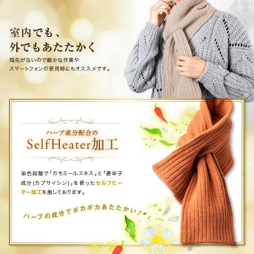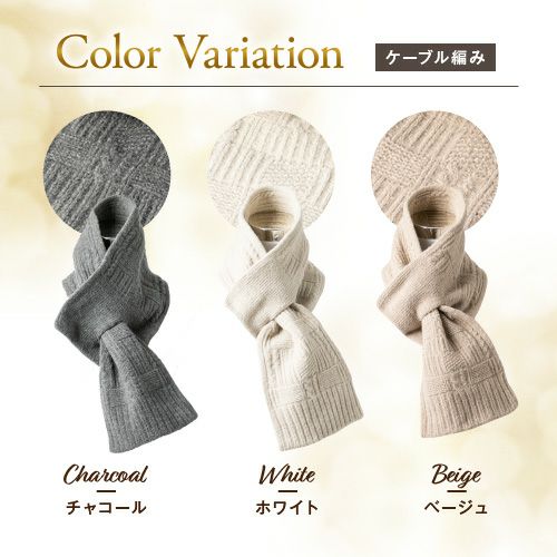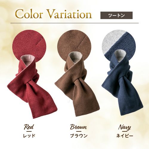 くるっと首に巻いてホールに差し込むだけの簡単装着で結ばなくても形が決まるかわいいマフラーです。カシミアのような風合いの「プレミアシュークリーム糸」を使用した肌触り抜群のショートマフラー♪ 血流を良くするセルフヒーター加工で芯から首回りがポカポカ。気持ちいい肌触りと暖かさで一度使うと手放せません。しっかりとあたためて首から熱を逃しません。選べる4柄、手袋とのコーデも楽しめます。