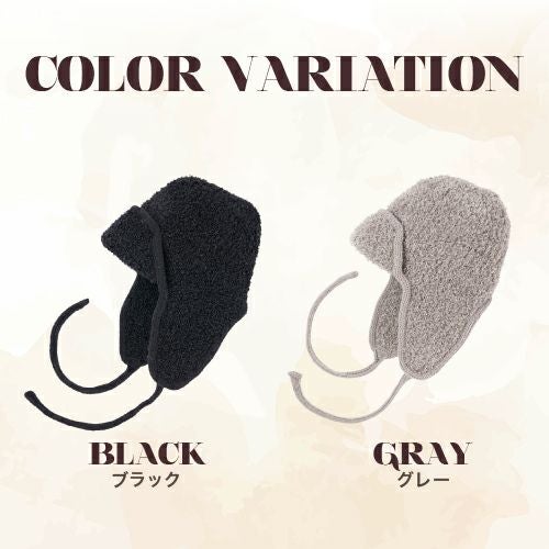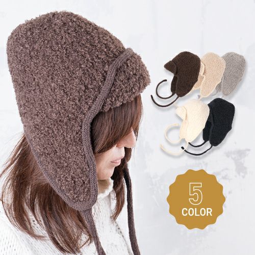 くしゅっとしたモコモコ感に耳付きデザインが魅力。耳当てを上げたりたらしたりと、気分やコーデに合わせたアレンジも
