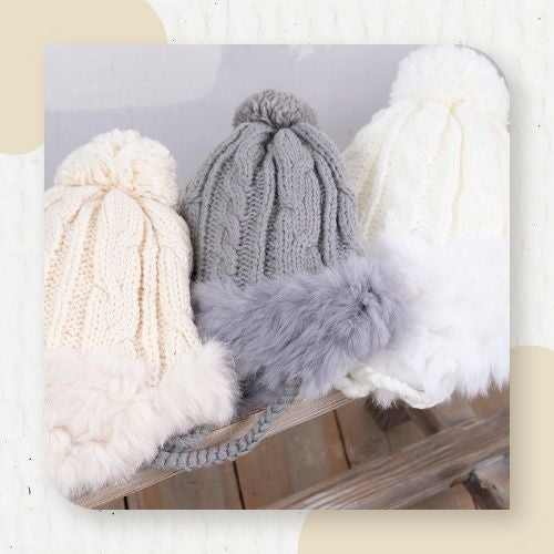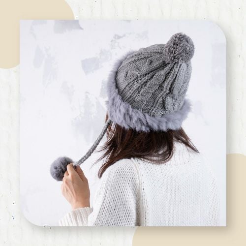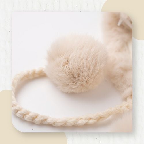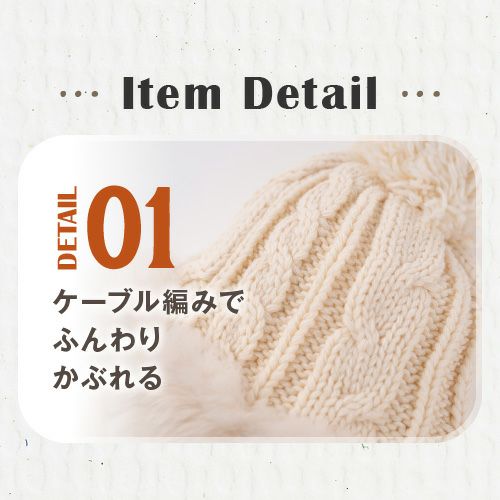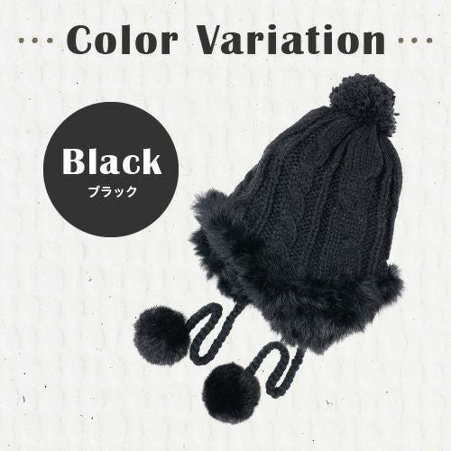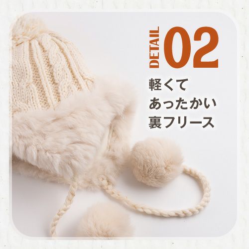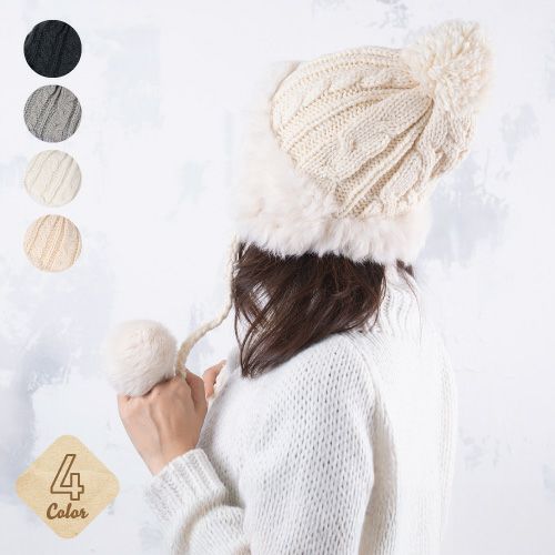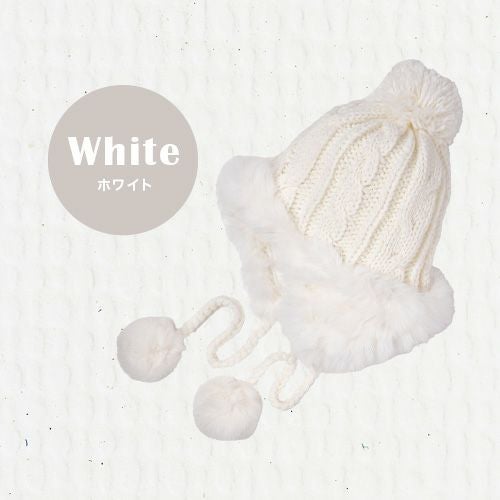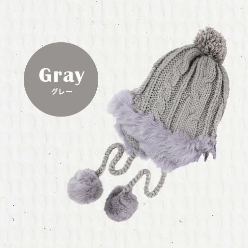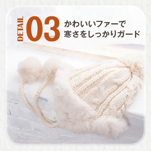 淵部分のファーもかわいく耳も しっかりガードで冬も快適。 トップと紐の先には梵天付き。 紐の先の梵天はファーでかわいらしさアップ。 ファー部分はふわふわのラビットファー