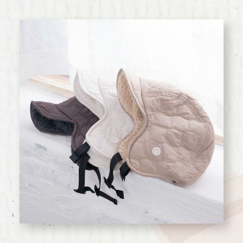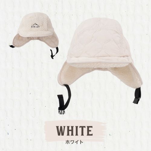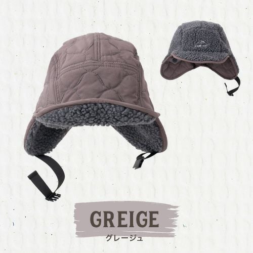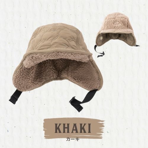 冬のコーデのアクセントイヤーフラップ付きフライトキャップです。ナイロンのキルティングで見た目はすっきりなのにシンプル過ぎないデザイン。リバーシブルにもなっているのでボア部分を表にすることも可能です。釣りなどのアウトドアにも最適。耳をやさしく守ります。耳当てを下ろしたり、耳当てを上げたりつばを上げたりといろいろなアレンジが可能。