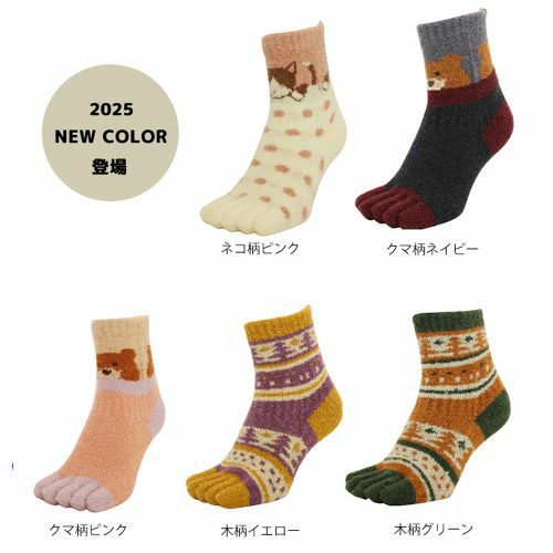 大好評のもこもこソックスにかわいくおしゃれなデザインソックスが新登場。全8柄の20パターンがお選びできます。落ち着いた雪柄やボーダー柄からかわいいクマ柄やネコ柄など足元をかわいく彩ります。もちろん他のソックス同様に足元をしっかりあたためられることは実証済み、シュークリーム糸使用の立体構造で足元ぴったり。チーセル裏起毛の上質なな肌触りは1度使うと病みつきです。さらにセルフヒーター加工でしっかりあたためてくれるので冷え性対策にもおすすめです。