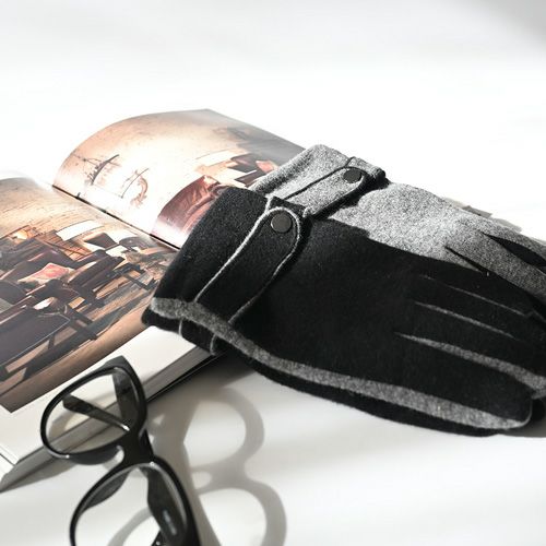 保温性が高く、温かみがあるウール混素材を使用しているので指先まで温かく、 寒い季節にぴったりな手袋に仕上げました。