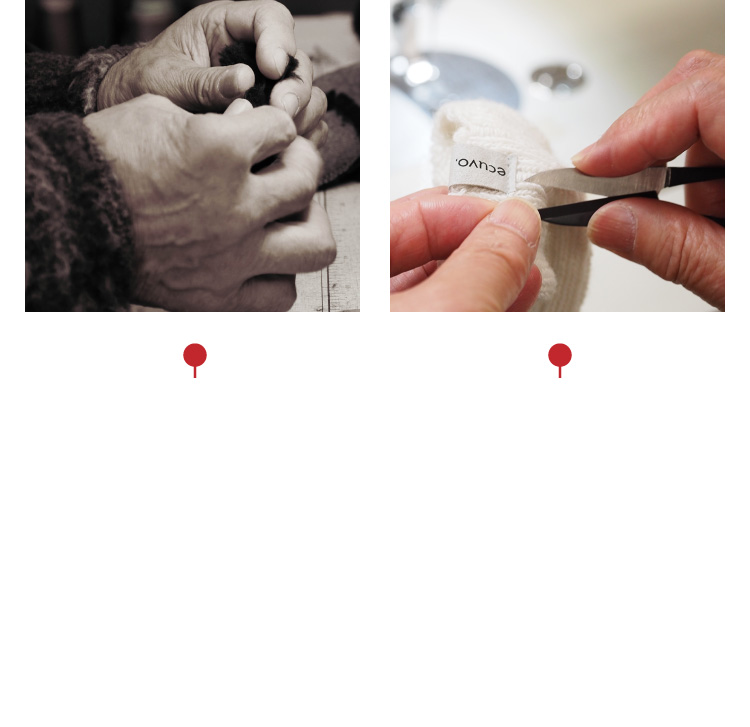 捨て糸や編み捨てを出さずに編み立てられるよう研究開発を進めごみを出さない独自の編み立て製法で商品を作っています。