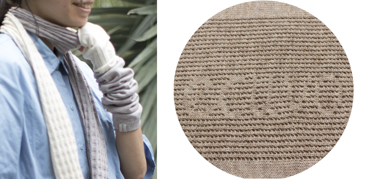 捨て糸や編み捨てを出さずに編み立てられるよう研究開発を進めごみを出さない独自の編み立て製法で商品を作っています。