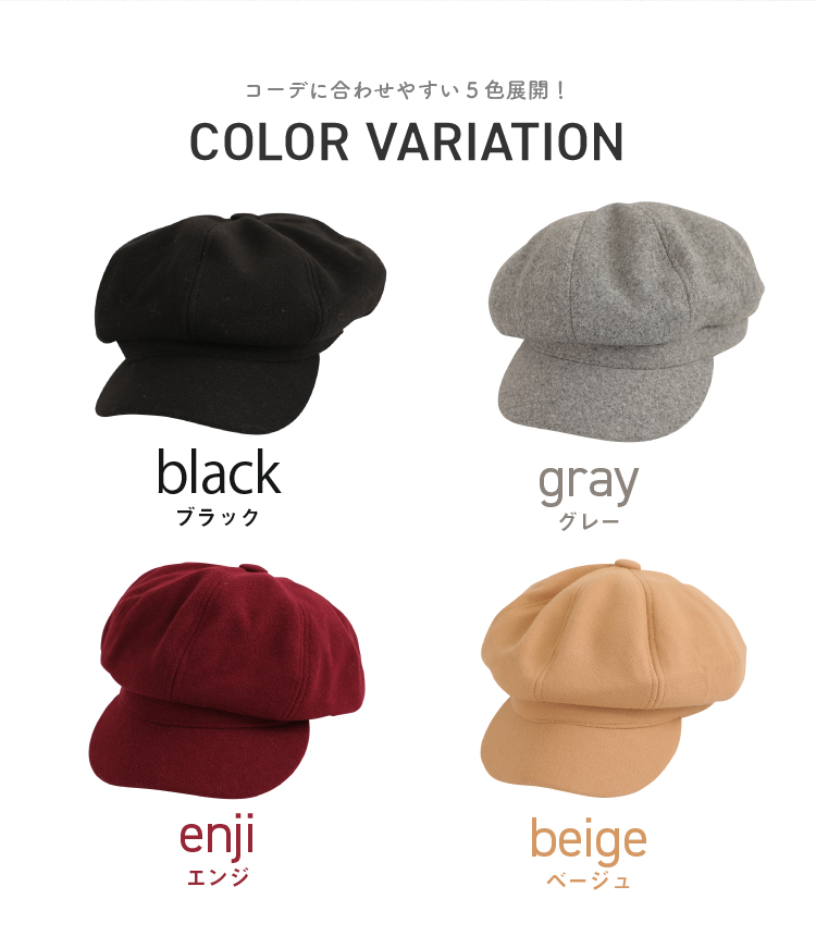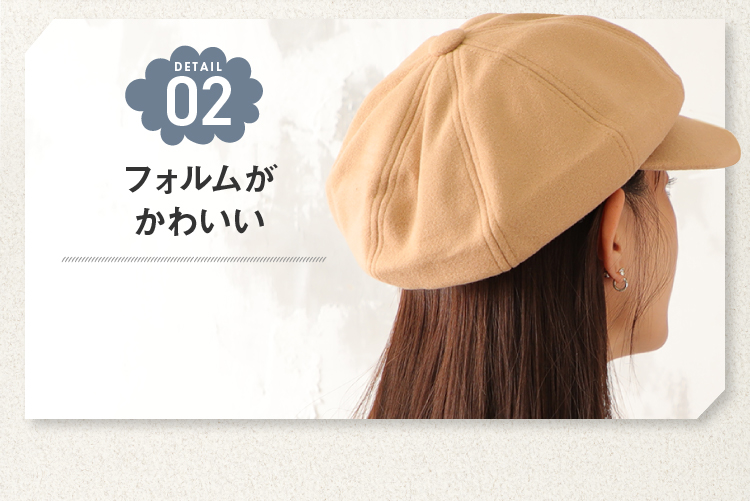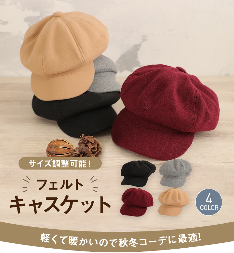 まあるいフォルムがかわいいキャスケット。フエルト素材でさらにかわいさを演出します。