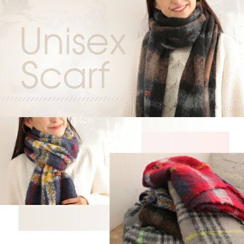 秋冬カラーのふんわりあったか大判マフラー。定番の大きなブロックチェックがかわいい 長さ180cm、幅30cmと面積が大きめで、肩に覆ったりしたり、首に巻いたり、ときには膝掛けに使ったりと色々な用途に使えて便利です。カジュアルスタイルにも、通勤スタイルにもデイリーにも。 個性的な雰囲気のデザインが可愛いです♪♪女性にも、男性にもオススメです。