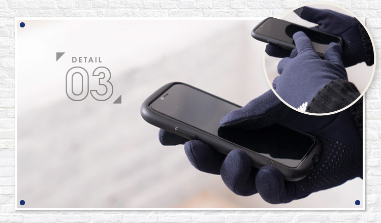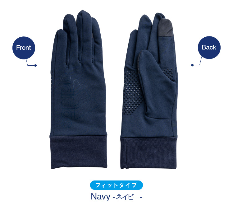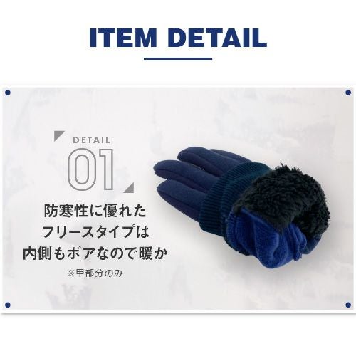 防寒性を主軸に置いたフリースタイプはインナーがボア仕様になっているのでさらに暖かで非常に軽く、アクティブな方にもおすすめ。フィットタイプも指や手が非常に動かしやすくアウトドアホビーなどにおススメのグローブです。どちらのタイプも掌側は滑り止付なので自転車の運転時などにも最適。また、人差し指と親指も生地切替部分はスマホ対応となっているのでスマホ操作もラクラク(機種や個人差があります。)