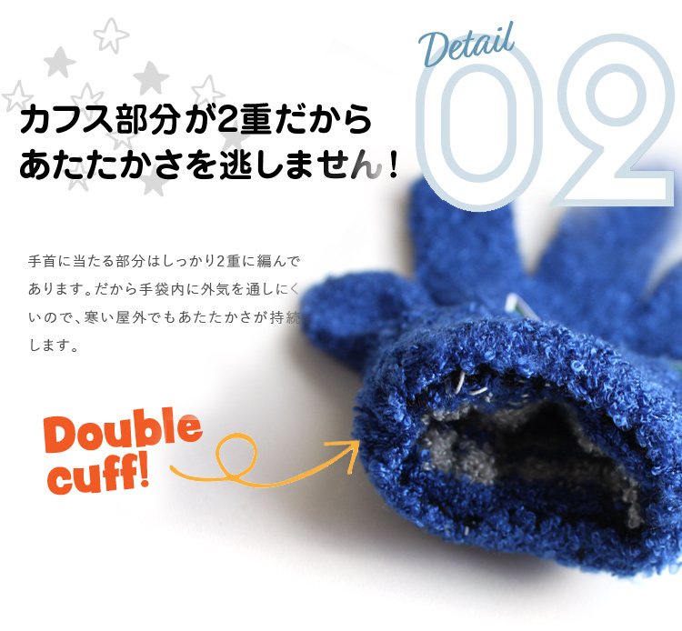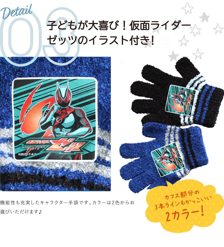 みんな大好き♪仮面ライダーガウのイラストが付いた手袋が登場♪ 甲部分には仮面ライダーガウのイラストが付いて、子供も大喜び♪また、カフス部分はニット2重構造で、冷たい外気が侵入しにくい仕様となっていて、機能性も充実したキャラクター手袋です。カラーは2色からお選びいただけます♪ のびのび素材でグーンと伸びるから、手を動かしやすいのもポイント。