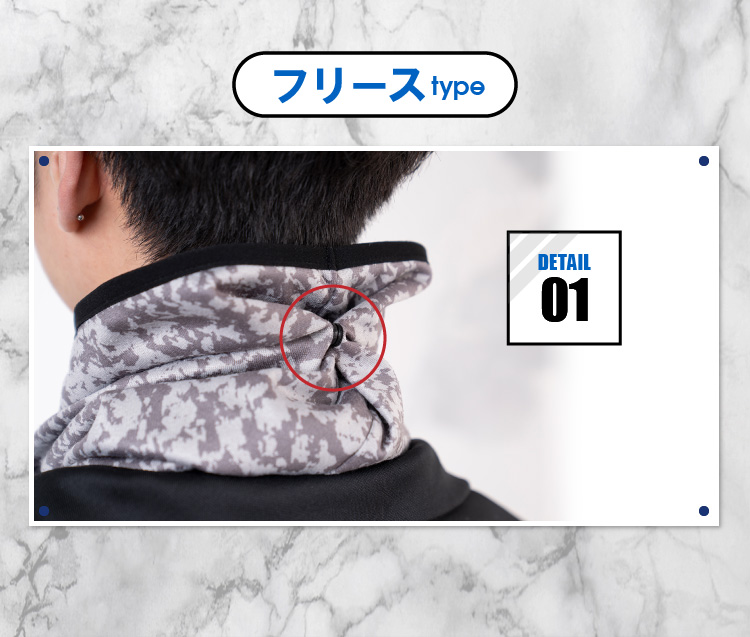 寒い風から首元を守ります、男女兼用ネックウォーマー デザインは裏ボアタイプとフリースタイプの2種類。裏ボアタイプは手触りのいいスエット素材にモフモフなめらかな裏ボアでとってもあったか。アウトドアや屋外でのスポーツ観戦などにも最適。フリースタイプはロングタイプで首全体をくまなくガード、後ろ側にボタン付きなので着用時に隙間ができにくく風が入りません。また、薄手で動きやすく、ウォーキングや運動時の着用に最適。 通勤や通学はもちろん、アウトドアやウインタースポーツなど 幅広いシーンで活躍でき、冬ならではの必需品です。 ロゴも裏ボアタイプはリフレクター素材なので夜間のウォーキングにも。フリースタイプは迷彩柄のビッグロゴでインパクトがありつつ、派手にならないデザインで使いやすい。
