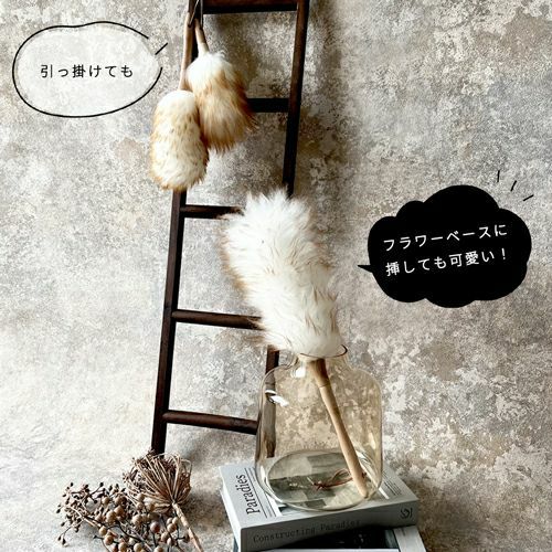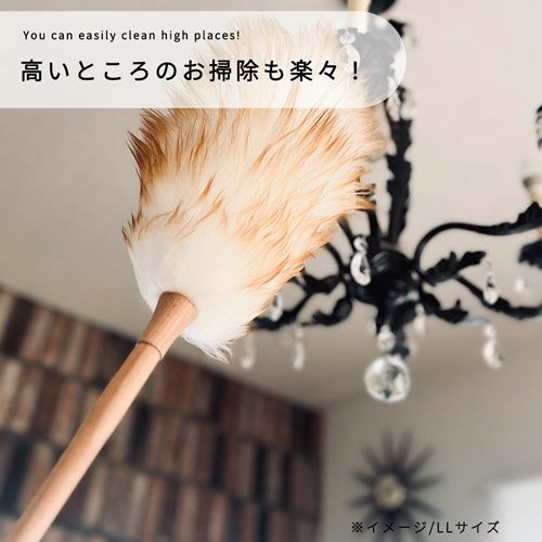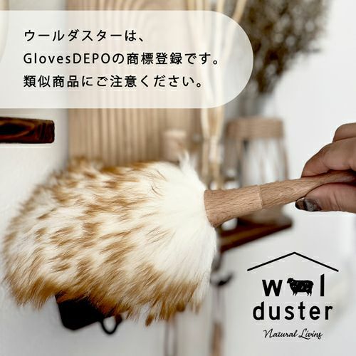 天然ウール100%のハンディ―ダスター。ウールは空気を閉じ込めて湿度を調整する繊維構造の為、ふわふわした弾力性がありホコリをよく絡めとる、ダスターには最適な素材です。摩擦もないからこんな風にお皿やカップの周りも大丈夫! パソコンのキーボードやテレビのリモコンなど小さな隙間はもちろん、驚くほど軽いので、天井の照明のランプシェードやクロスの高い部分のホコリ取りもラクラクです。 高級感ある革紐をフックに引っ掛けておけば、使いたい時にいつでもすぐにお掃除できます。すぐに手の届く場所に置いておく。インテリアにもスッと馴染んでくれますよ。