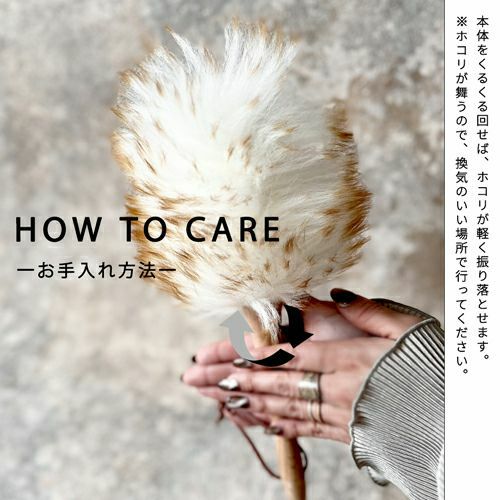 本体(柄)を両手で挟んでくるくる回せば、ホコリを軽く振り落とせます。※換気の良い場所で行ってください。
