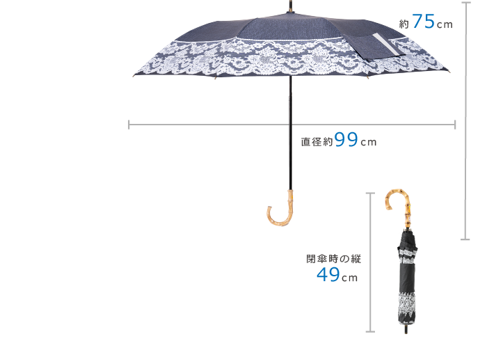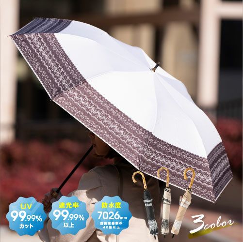 UVカット99.99%以上、遮光率99.99%以上、耐水度7026mmを誇る晴雨兼用のかわいいくて機能的、広い範囲で紫外線をカバーでき、おしゃれな日傘兼雨傘。おしゃれにUVケア&雨の日にも使えるのがうれしいポイント。