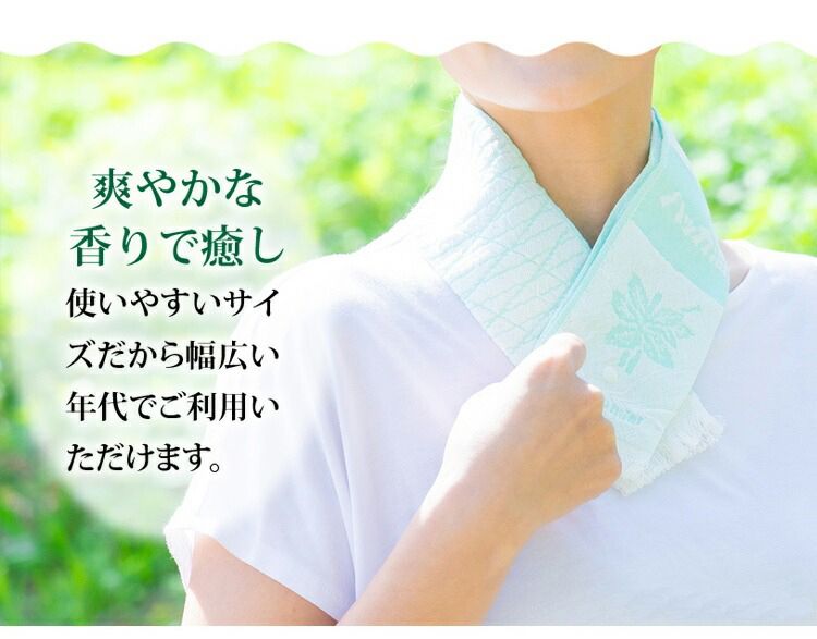 クール糸を使用しているので接触冷感作用で表面に触れるとひんやり冷たい!エアコンや扇風機の補助としてもお使い頂け、エコにも繋がります!北見ハッカ通商オリジナル・天然「ハッカ油」の香りをマイクロカプセルに封じ込め、タオルに吸着させました。軽くこすると「ハッカ」独特の爽やかな香りが、ふんわり広がります。