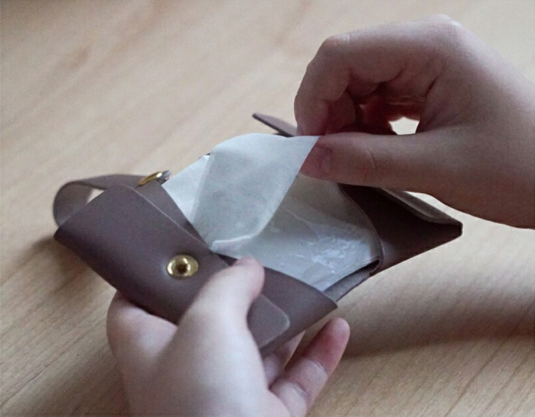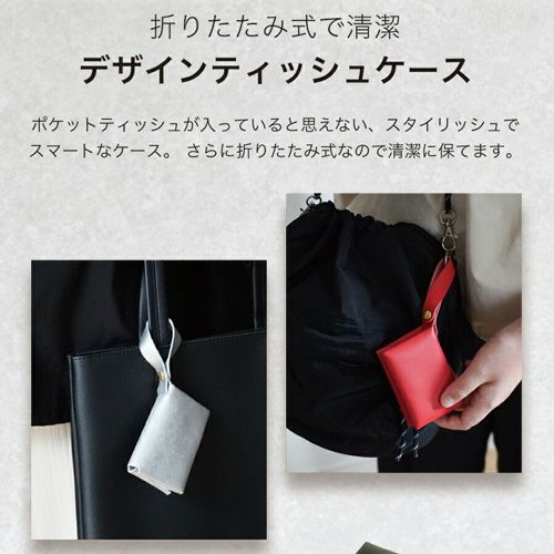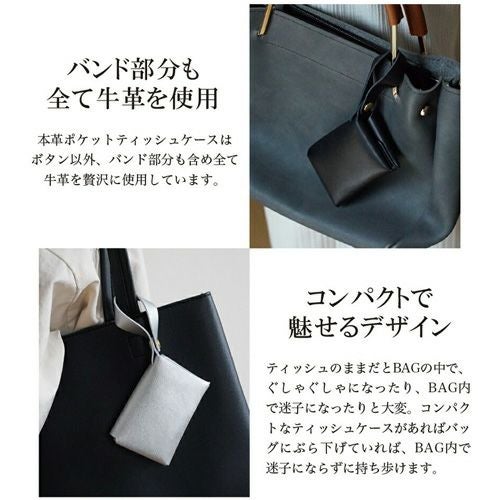 国産牛革を使用したポケットティッシュケース。ポケットティッシュをバッグの中に入れていると迷子になったり、ぐちゃぐちゃになったりと大変な問題を解決してくれる優れもの。簡単に管理ができて、使いたいときにサッと使えるのでオススメです。