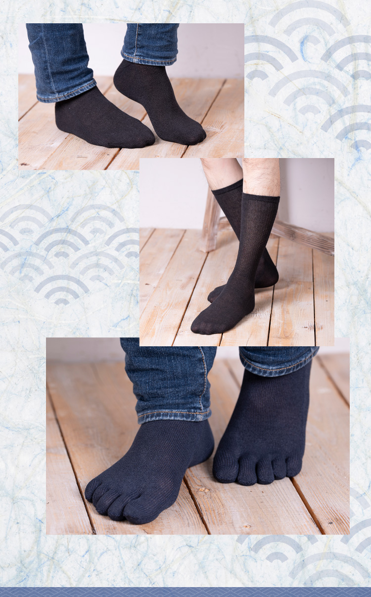 1300年以上の歴史と伝統を誇る、薄くて丈夫で軽い「美濃和紙」を使った新感覚の靴下です。吸湿性や放湿性に優れた素材なので、汗をかきがちの春夏にはピッタリです。後処理の消臭加工と違い、10回洗濯しても消臭効果は保たれます。また劣化の原因となる摩擦自体が起きにくく、熱にも強いことから、他の繊維と比べても、圧倒的に強く、取り扱いもラクなのが特長です。1日快適に履き続けることができる紳士召集ソックスです。