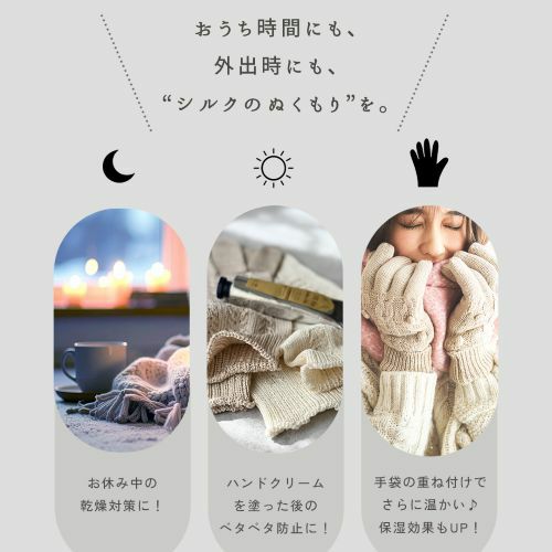 重ね付けで手元ポカポカ。肌にやさしいシルクのあたたかさ。