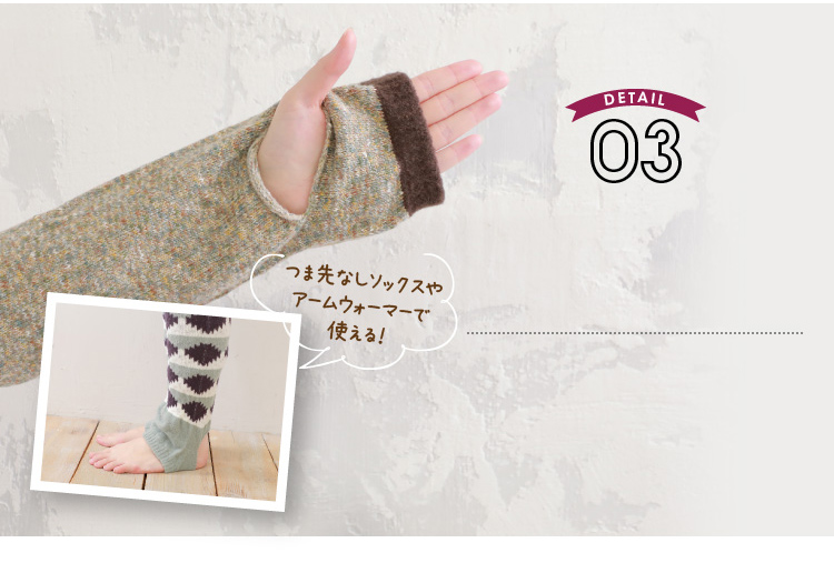 カシミアのような風合いの「プレミアシュークリーム糸」を使用した肌触り抜群のマルチウォーマー♪血流を良くするセルフヒーター加工で芯から足がポカポカ。気持ちいい肌触りと暖かさで一度使うと手放せません。足首を温めることで、冷えやむくみ、疲れの予防に!グーンとのびるストレッチ性に優れているので、足をしめつけないのでお休み時や妊婦さんにもおすすめ。ゆったり使えて、スリットも入っているのでアームウォーマーやヨガソックスなどにもおすすめです。4デザインの11パターンからお選びいただけます♪