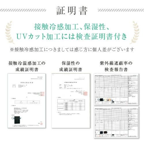 合格書付の接触冷感加工で、触れるたびにヒヤッとした涼しい感覚があります。