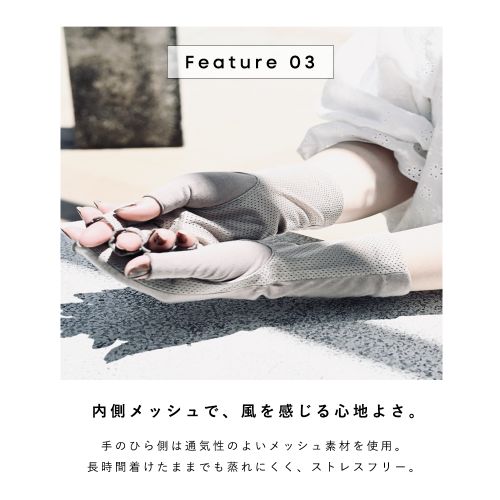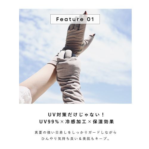 大豆繊維 清涼メッシュ uv手袋 5本指 ショート 接触冷感