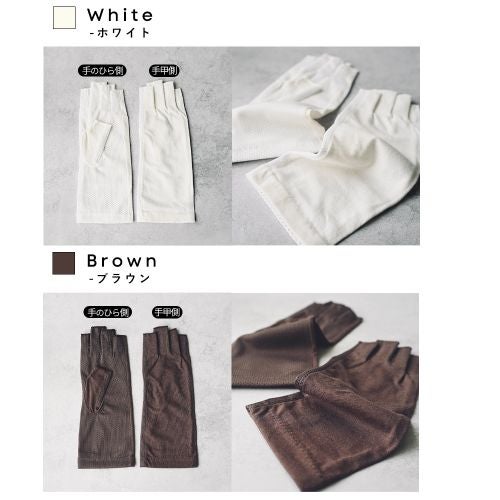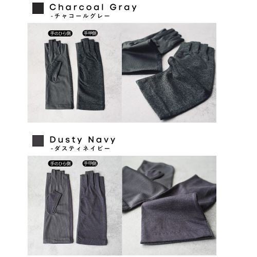 大豆繊維 清涼メッシュ uv手袋 指無し ショート 接触冷感