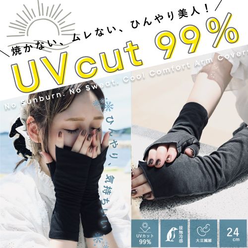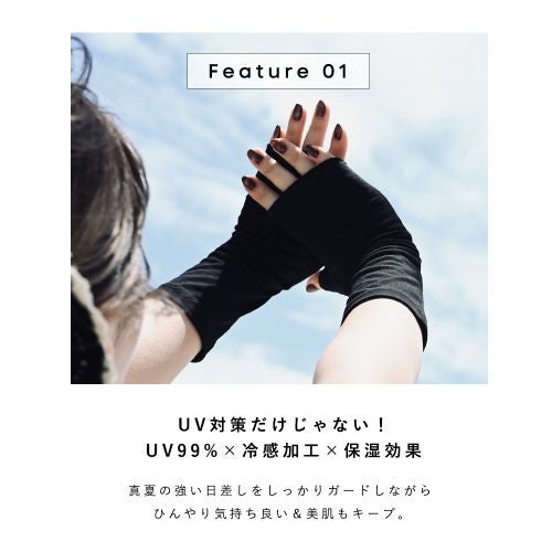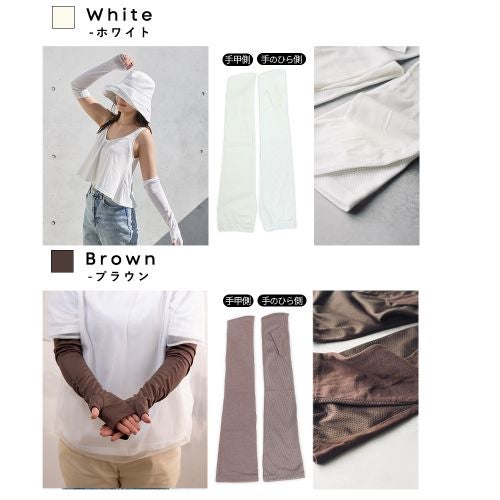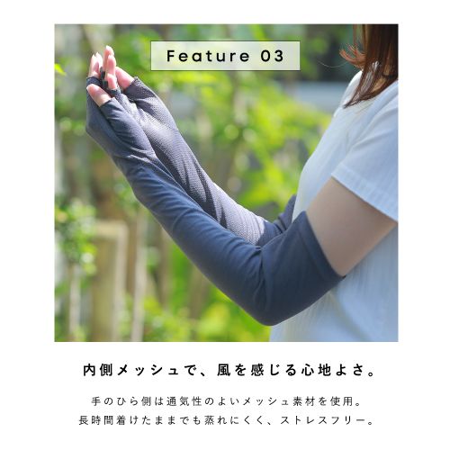 【母の日限定】対象商品2枚で200円OFF!大豆繊維 清涼メッシュ uv手袋 指なし 超ロング 接触冷感