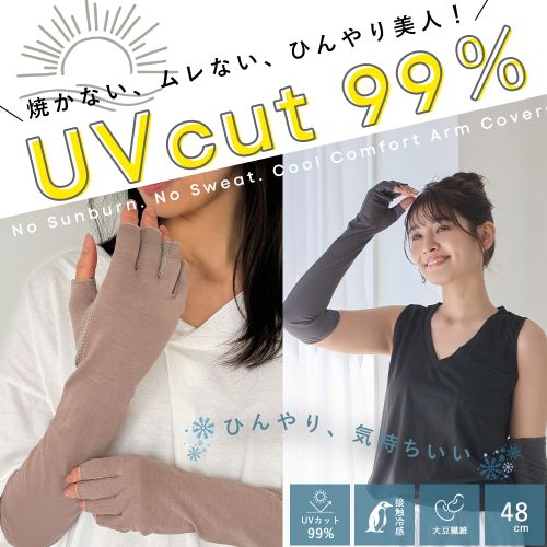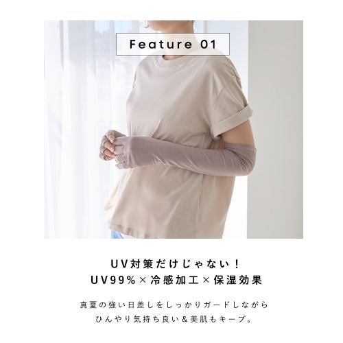 コットン100% uv手袋 超ロング 接触冷感 すべり止め付き