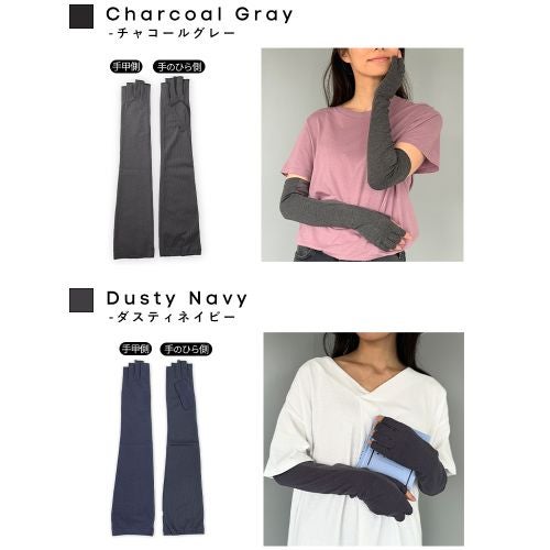 オーガニックコットン100% uv手袋 指なし 超ロング
