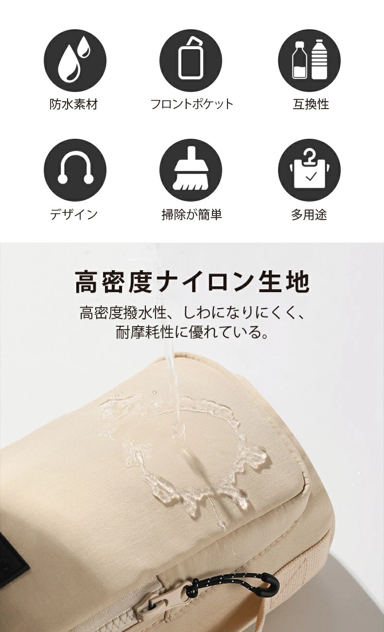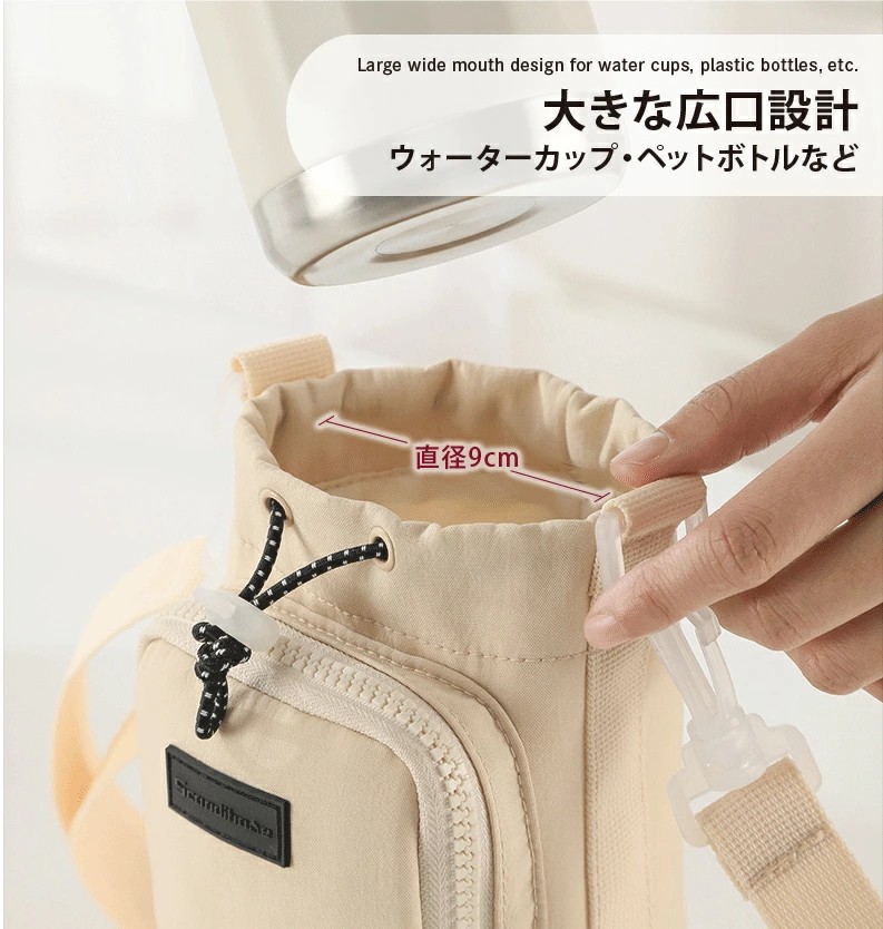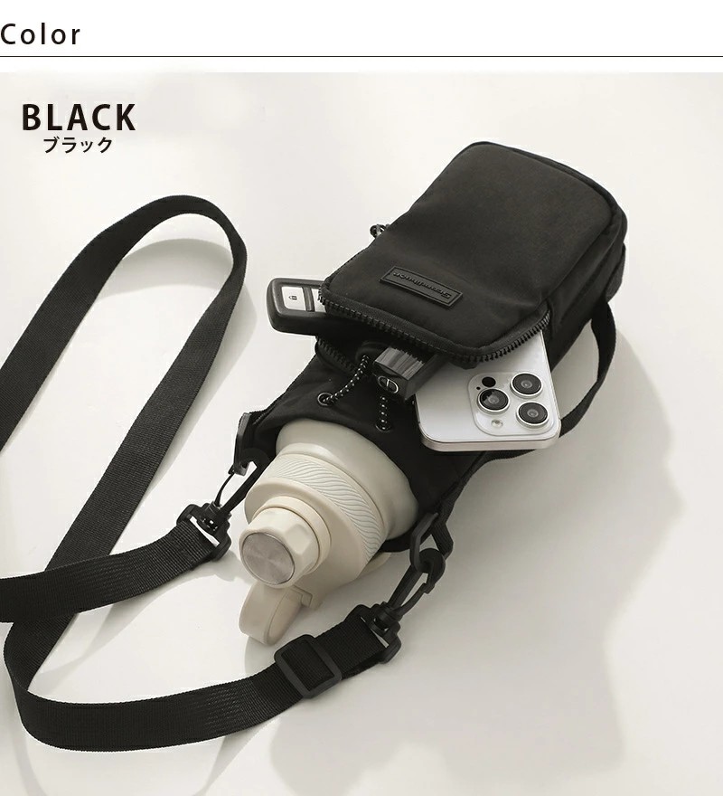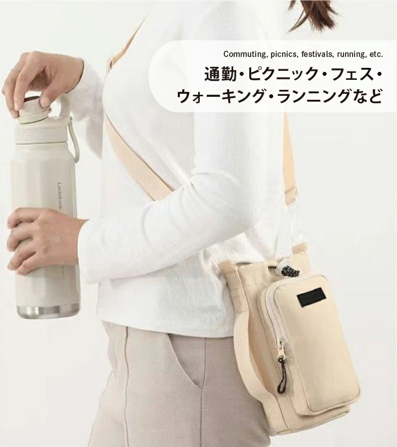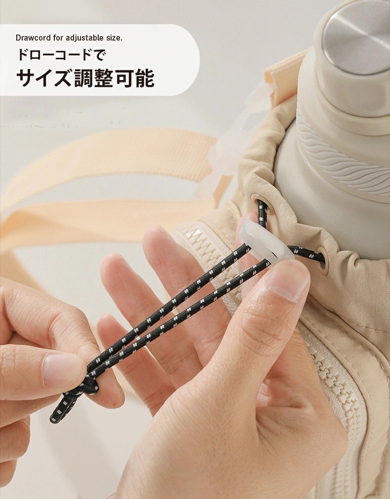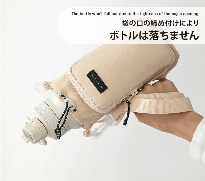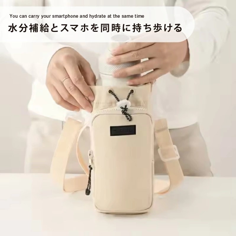 高密度ナイロン素材で防水・耐摩耗性に優れており、日常使いに最適。3WAY仕様で、肩紐は調整&取り外し可能。この一つで水分補給・スマホ持ちを兼ね備えられる為、身軽にお出かけが楽しめます。巾着式開口部はドローコードでしっかり固定でき、ボトルの落下を防止。通勤・散歩・フェス・ピクニックなど幅広いシーンで活躍。