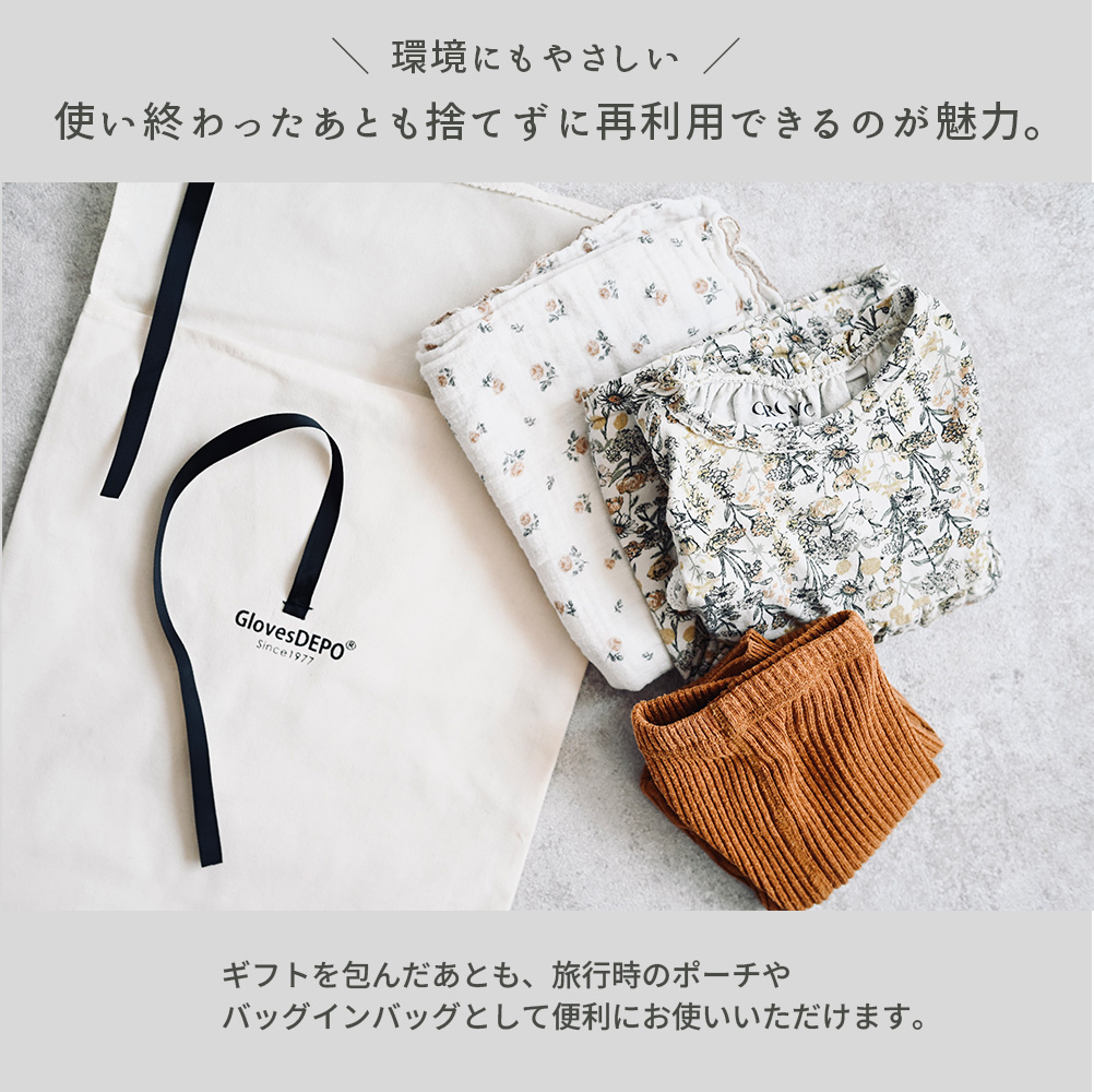 贈ったあとも、小物ポーチやトラベルバッグとして再利用できる、環境にもやさしいサステナブルなギフトバッグです。