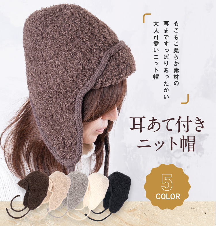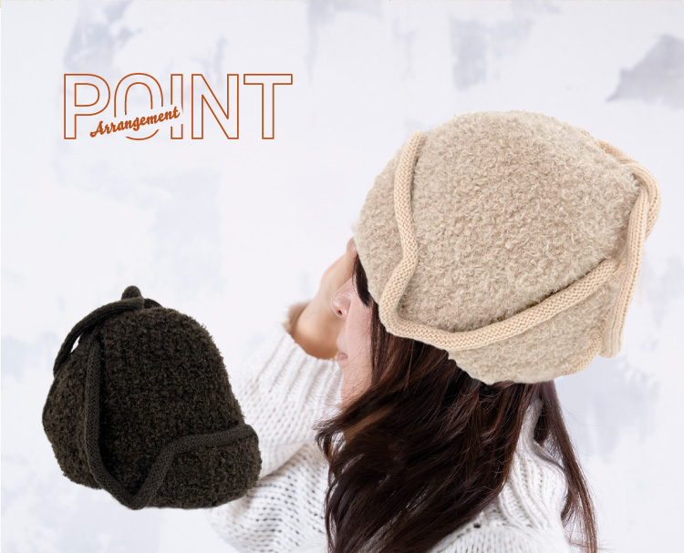 くしゅっとしたモコモコ感に耳付きデザインが魅力。耳当てを上げたりたらしたりと、気分やコーデに合わせたアレンジも
