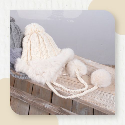 淵部分のファーもかわいく耳も しっかりガードで冬も快適。 トップと紐の先には梵天付き。 紐の先の梵天はファーでかわいらしさアップ。 ファー部分はふわふわのラビットファー