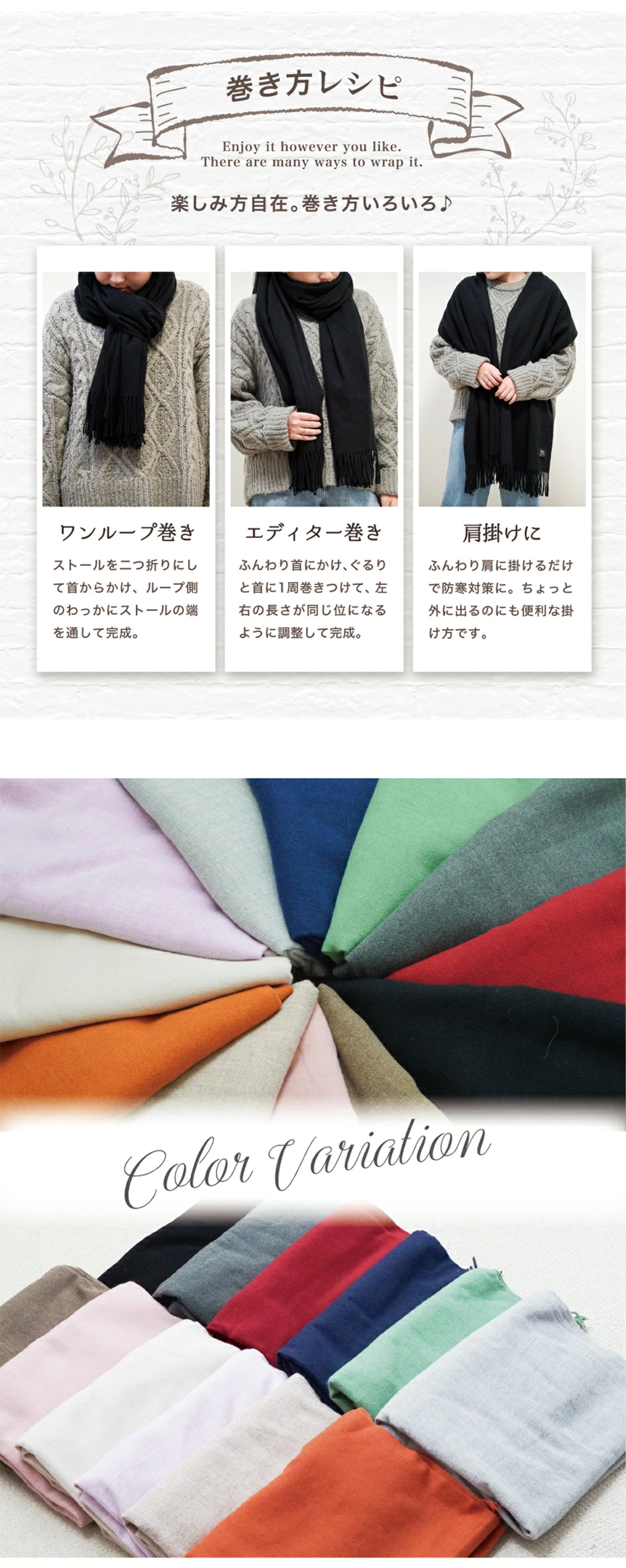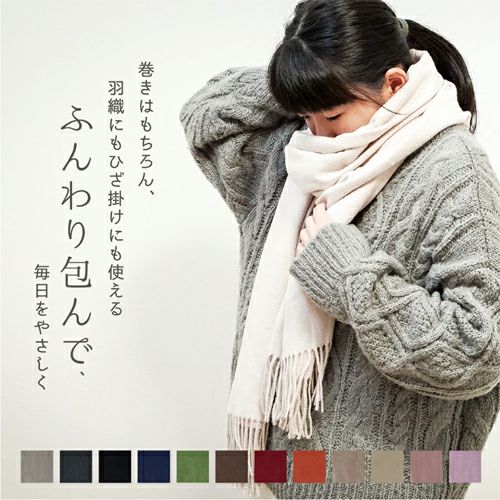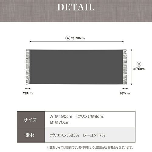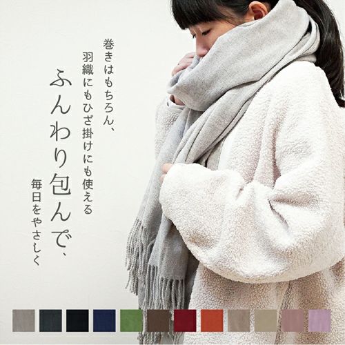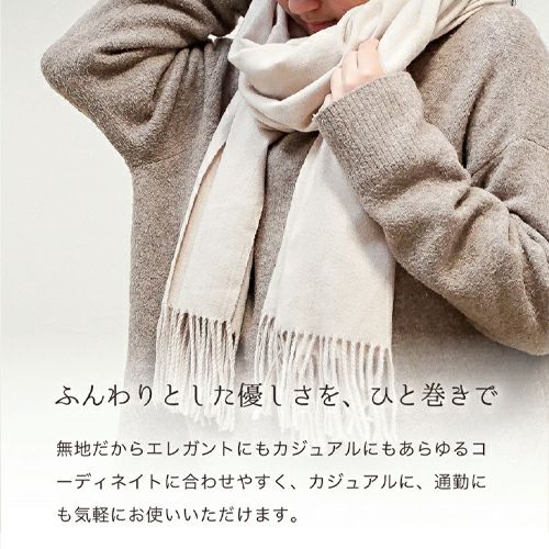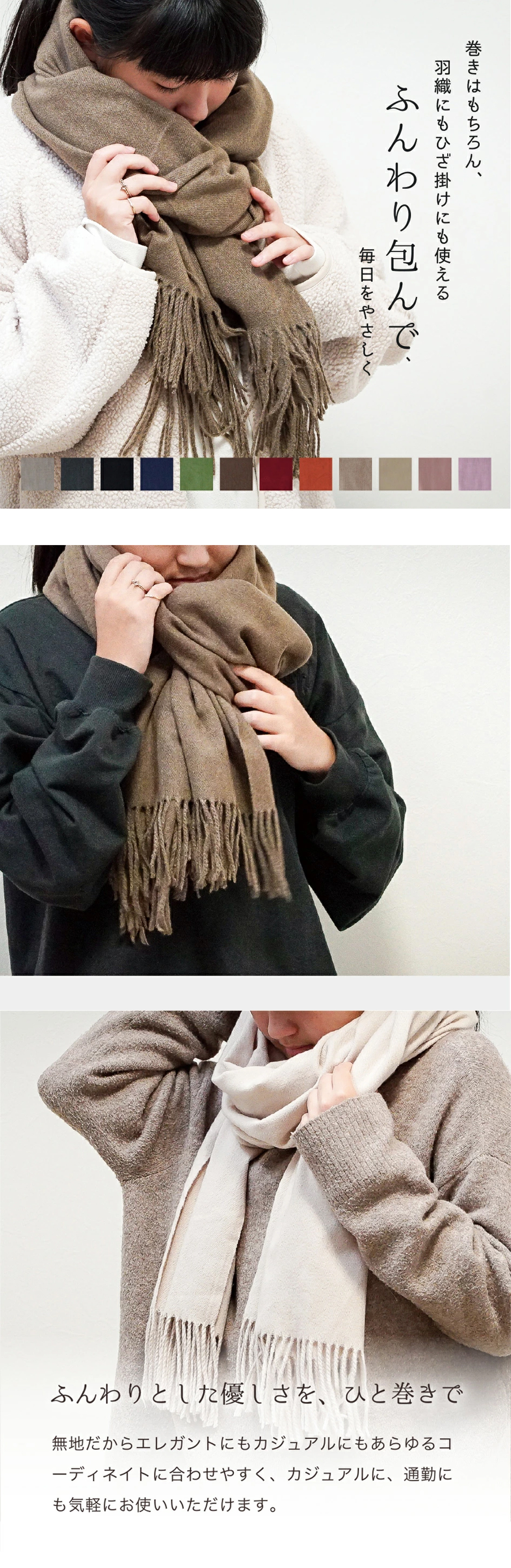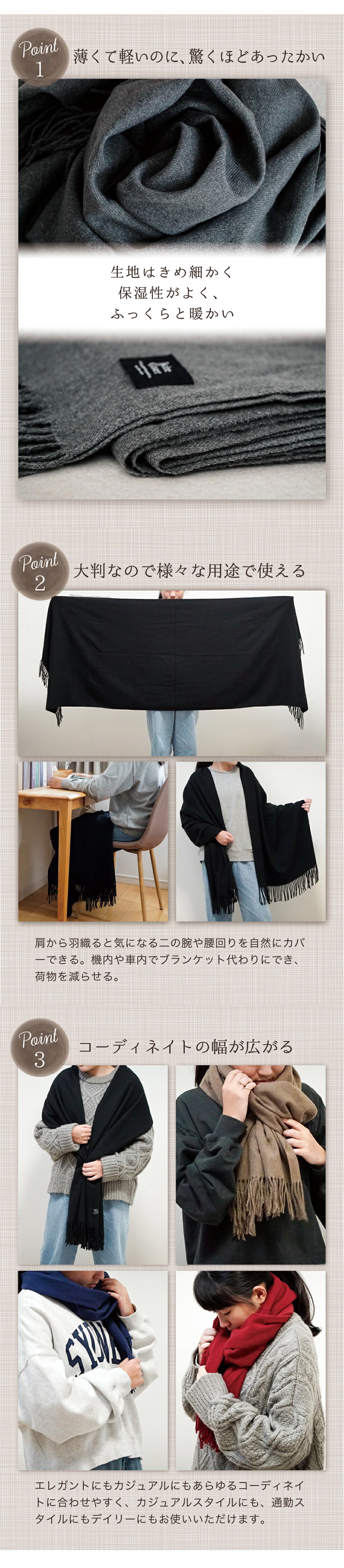 アウターの上から巻いてももたつかない、約70cm幅のすっきりとしたデザイン。