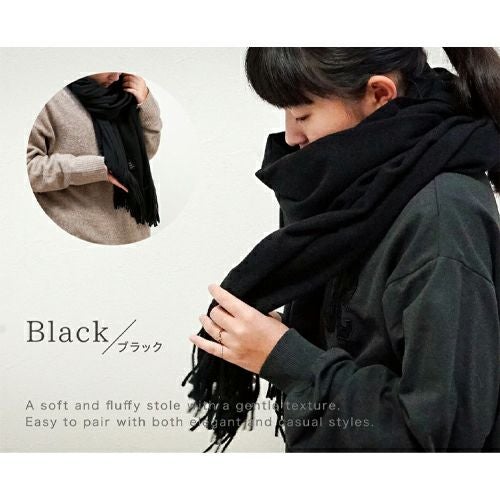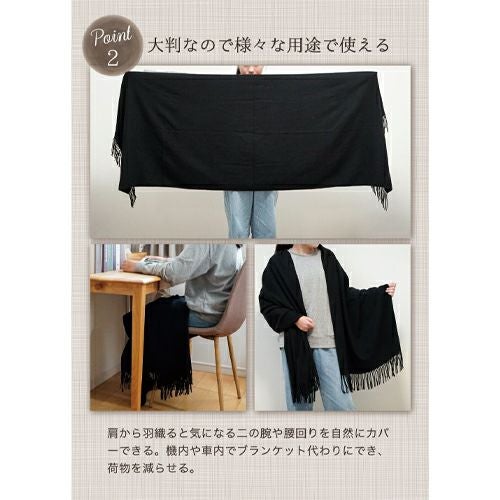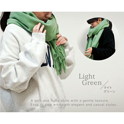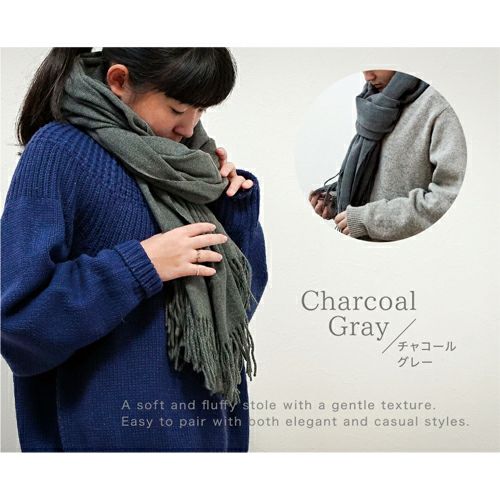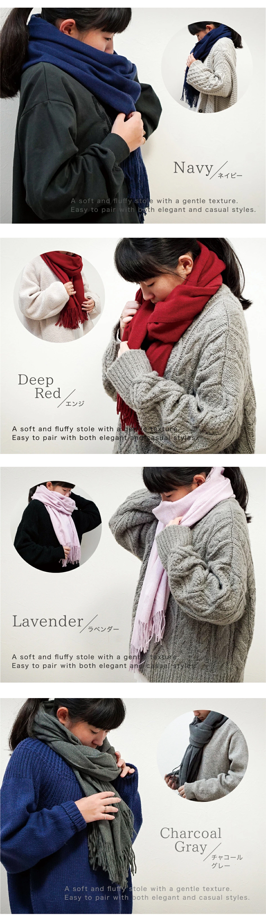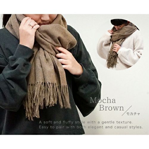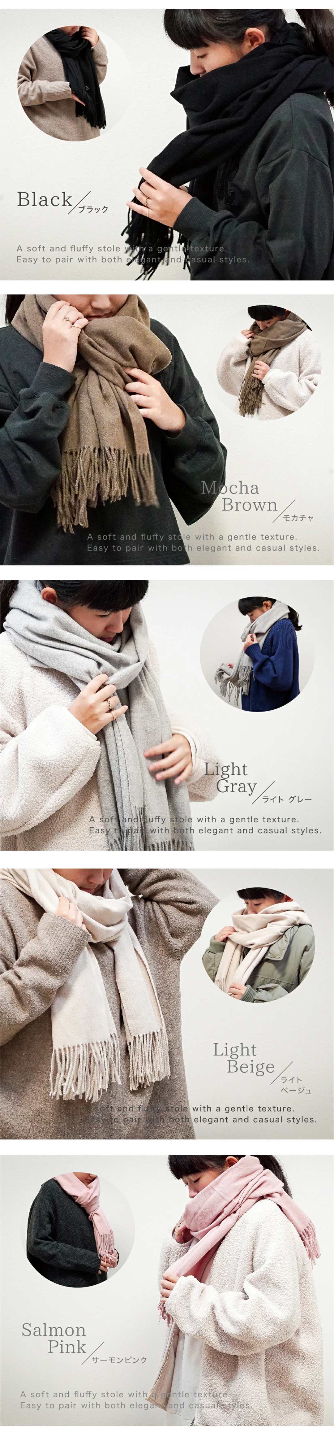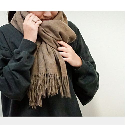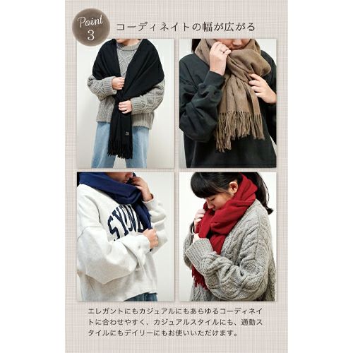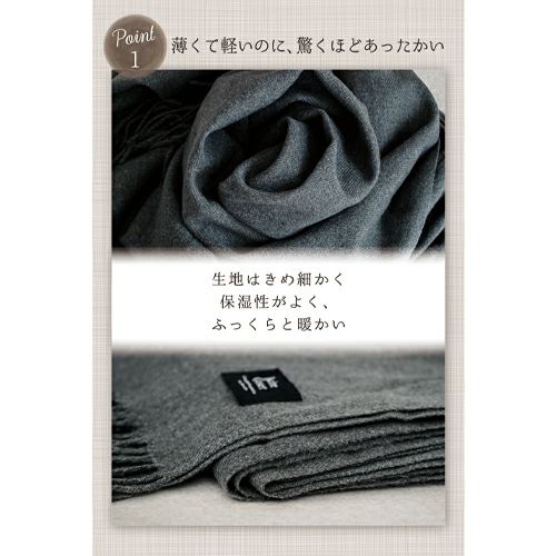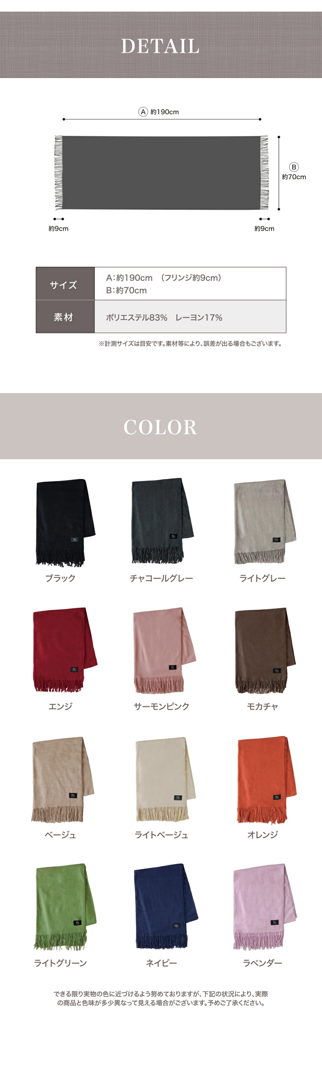 アウターの上から巻いてももたつかない、約70cm幅のすっきりとしたデザイン。