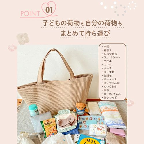 たっぷり入るのに軽くて持ちやすく、お出かけや送迎、ちょっとしたお買い物にも活躍します。