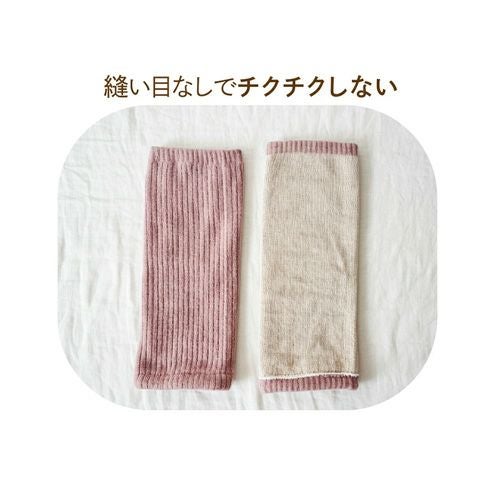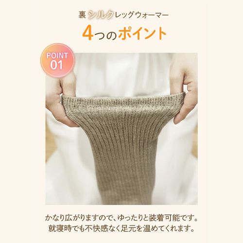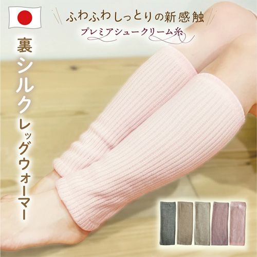 カシミアのような風合いの「プレミアシュークリーム糸」を使用した肌触り抜群の裏シルクレッグウォーマー。