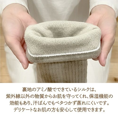 のびて芯から温まる「プレミアシュークリーム糸使用」裏シルクレッグウォーマー