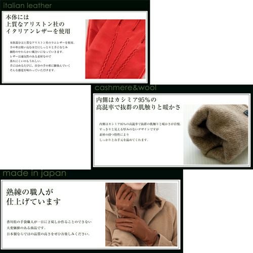 内側はカシミア95%の高混率で抜群の肌触りと温かさが自慢。 すっきりと見える厚みのないデザインですが、素材の持つ特性によりしっかりと手を温めてくれます。