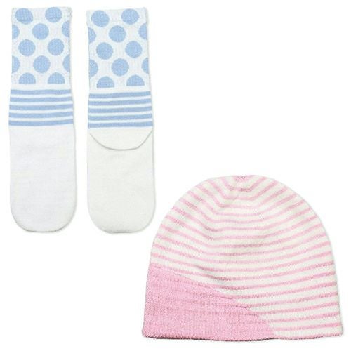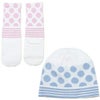 ボーダーサックスブルー(ソックス)&ドットピンク(キャップ)