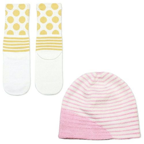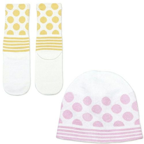 ボーダーイエロー(ソックス)&ドットピンク(キャップ)