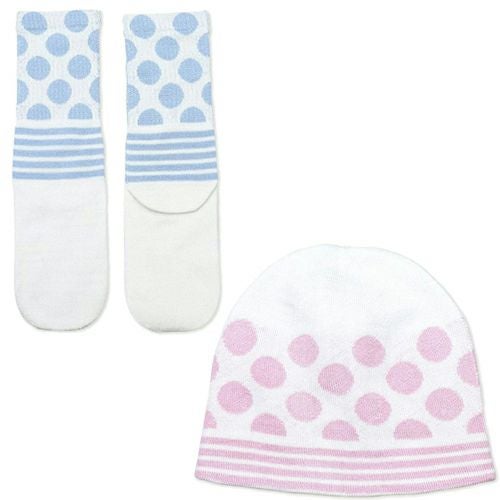 ボーダーピンク(ソックス)&ドットサックスブルー(キャップ)
